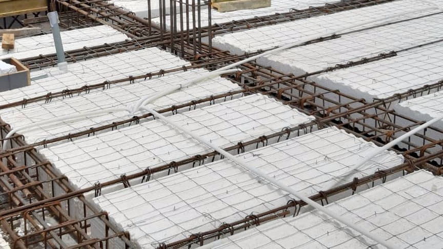 Due to the light weight structure of EPS blocks, less concrete beams would be used; thus reducing the wieght of the entire structure as compared to the case of a normal concrete slab.